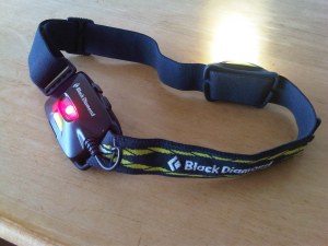So it was with a fair bit of sceptisism that I tested the Black Diamond “Urban Inspired” Sprinter. From a design perspective the Sprinter looks fantastic and rather futuristic compared to most headlamps or as Mel likes to call them: “doos liggies”. The Sprinter fells balanced on your head with the battery pack on the back. It also does not feel too heavy.