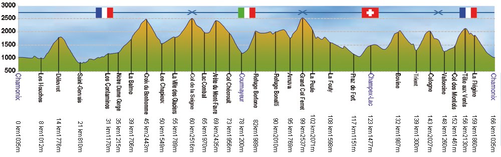 The UTMB is a 166 km ultra trail run around the highest peak in Western Europe (Mont Blanc). We start in Chamonix, France and then run counter clockwise into Italy, Switzerland and back to the start. The route follows the Trail du Mont Blanc hiking trail for the majority of the way. The big challenge (besides the distance to cover) is that we have 9500m of altitude gain and loss over that distance. That is a massive 57m/km on average. So my training diet has been hills, hills and some more. See my post “In Search of a Hill”