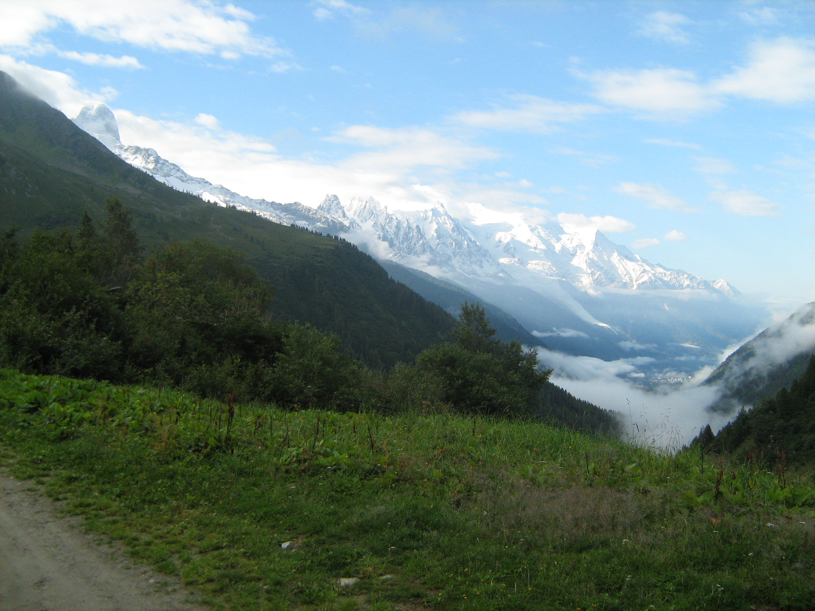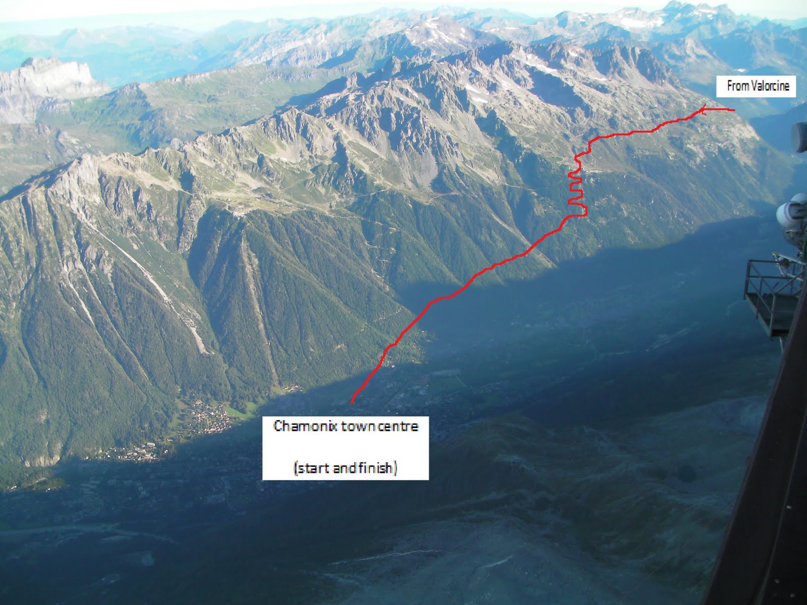 | UTMB Leg 1: View down the valley from Chamonix showing Les Houches and the first climb before St Gervais. |
