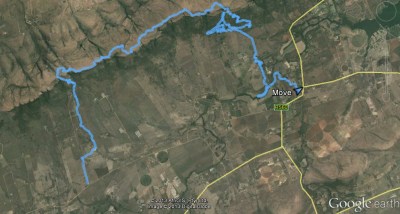 After half an hour or so we crest onto the top of the cliff line and turn right along single track. Meandering up and down the “non steep” side of the ridge, we each run at our own pace. I am ok on the flats but the ups I lose ground. The views are spectacular both towards Brits and to our right into the valley. We ride the crest making many turns to hit the best viewpoints. At some point we very briefly join a jeep track but veer off right at a prominent tree. (don’t follow this jeep track as it will take you miles off course). We dip down to the right and I think our descent is here but no! We turn left again and climb. Finally the descent off the ridge arrives at about 15km and I make up some places. The switchback are tight and the running is fast.