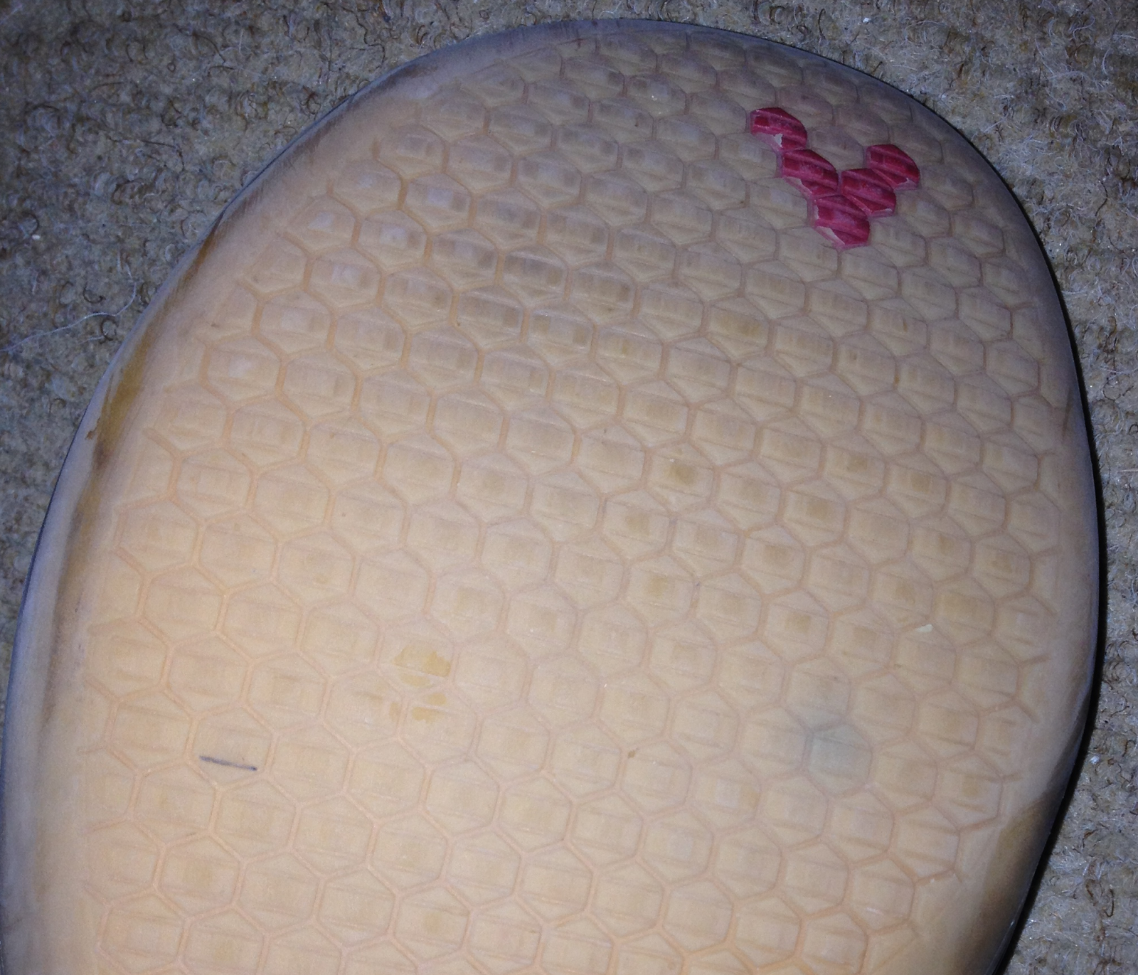 My right foot (image left) has got a lot more wear in the ball of the foot. Not sure if you can see but there is hardly any wear on the big toe. I tend not to roll through very well on this foot and it shows on my running shoes too.