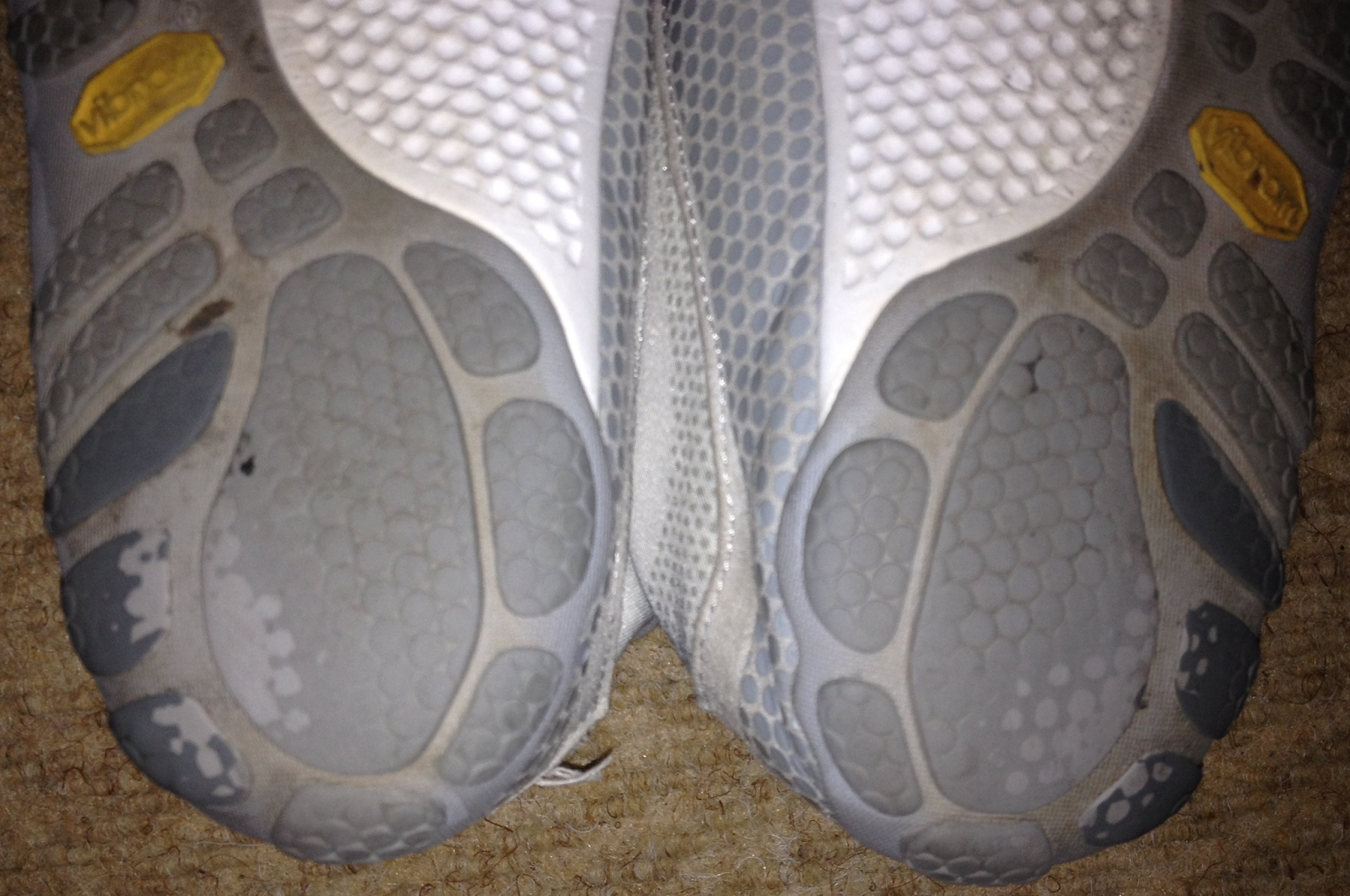 First of all I was surprised by how much wear there was on the heels but then I was standing a fair amount and not actually running as per natural barefoot runners.