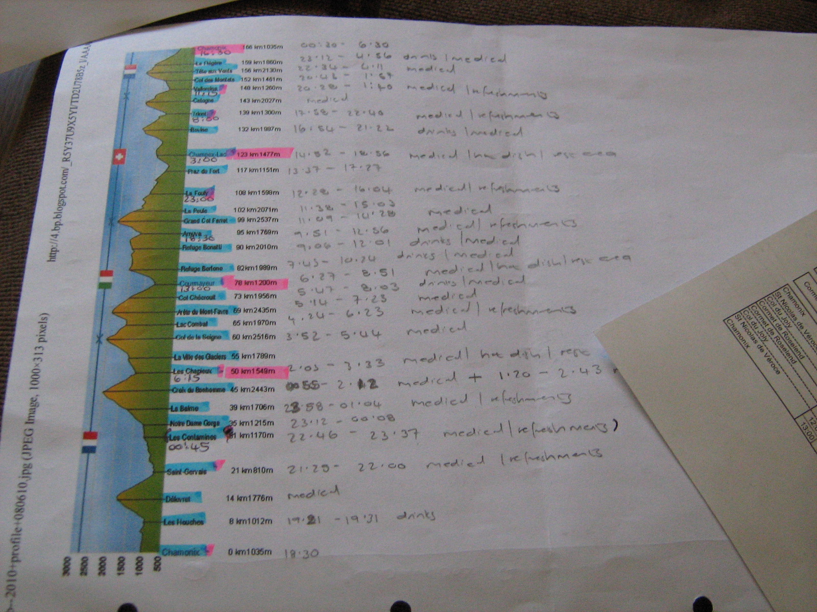 at UTMB in 2010 I had detailed time estimates for my seconds