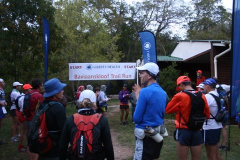 Me wearing a bum bag only while other runners have their torso covered with back packs