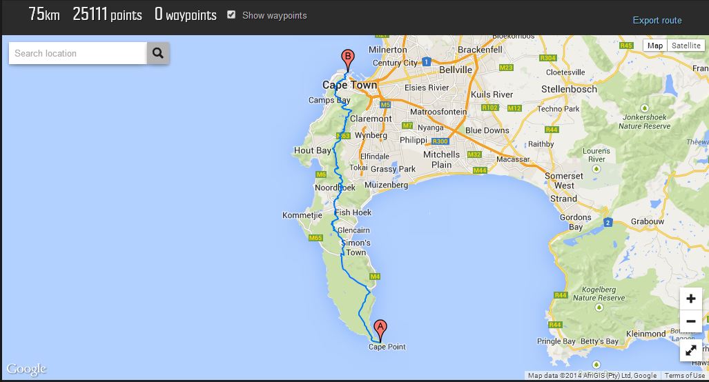 AJ Calitz Puffer 2012 route 75.02 km – Route at Movescount.com.