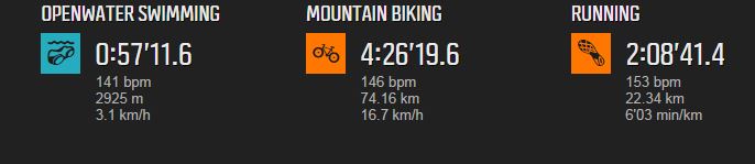 The 74 km bike took 4h26 with me keeping the effort pretty constant except for a bit of a surge after WP1 to try and catch a wheel. This was a waste as they rode away from me and I burnt a match. I lost a few places here but made them up in the last third of the route. The longest hill took well over 20 minutes of mostly granny gear! There are some fast sections towards the end where you can make up time. I fueled well on the bike, I consumed 4 X 750ml bottles with 1 scoop each of 32Gi powder in them. I had a total of 3 sticks of Landjaeger (go and ask a German Butcher), 2 hot cross buns, 1 banana, 1 32Gi bar, 1 packet of 32 Gi chews.