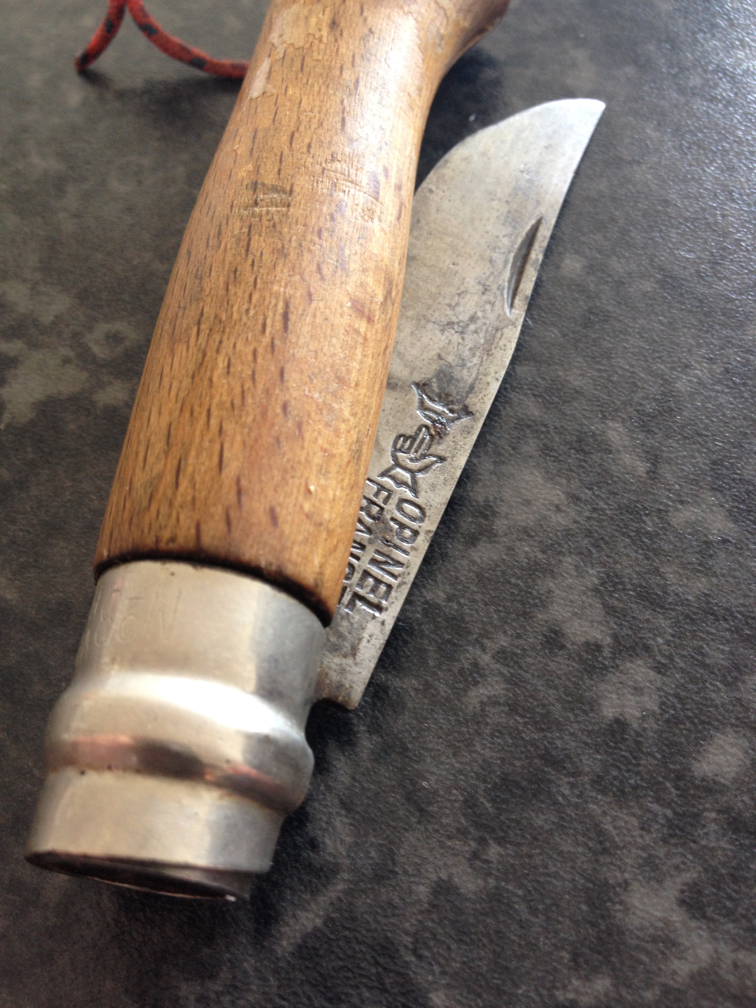 Beauty in simplicity. I first fell in love with an Opinel no 8 Carbon in 1991. Légion étrangère printed on the wood is now faded. No souvenir. Judging by the previous owner I suspect it did not lie idle. Even the knick out of the curve adds to it’s beauty. I sharpen it on a smooth river stone often.
